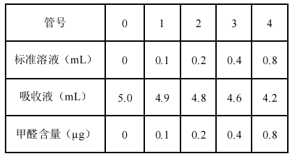 取5支10mL具塞比色管,用甲醛标准溶液按下表制备标准色列管。